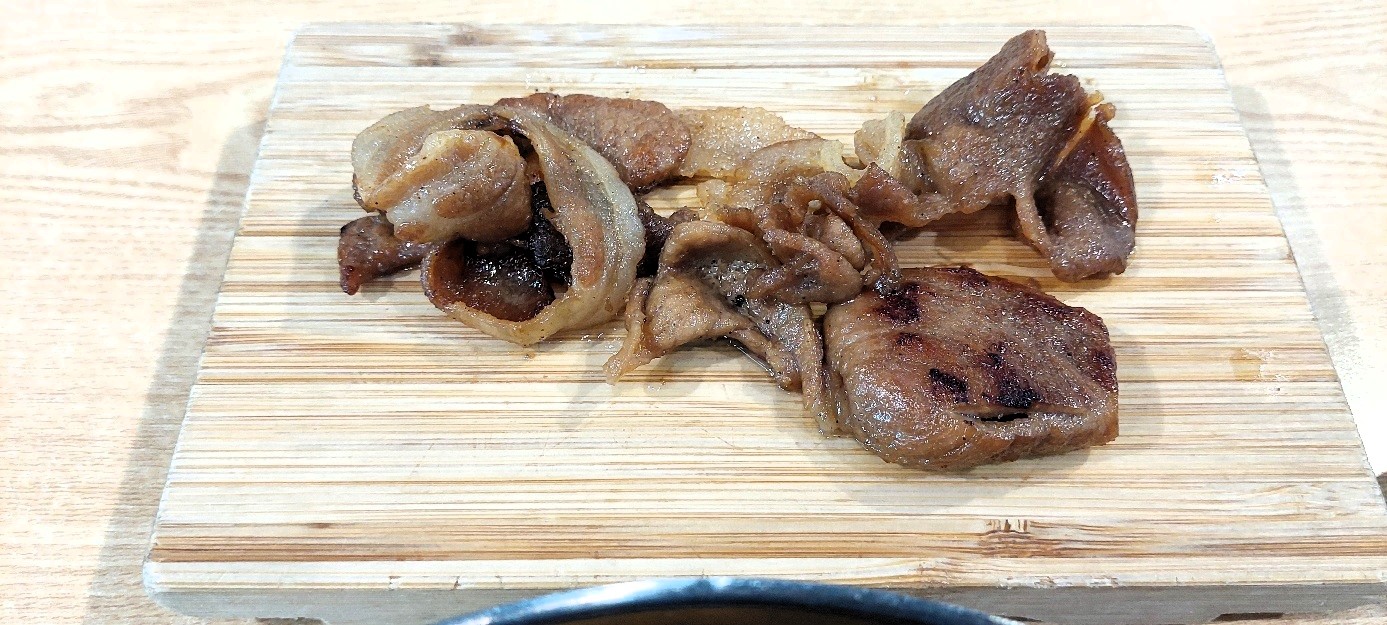 초월냉면 인기가 있는 이유중에 하나는 냉면과 함께 나오는 숯불돼지고기입니다. 고기주는 냉면집.