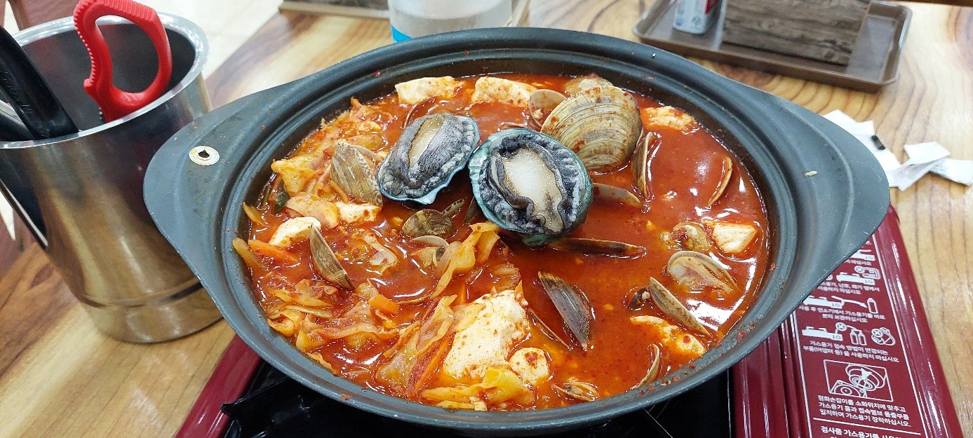 그리 맵지 않고 진한 순두부 맛이 나서 공깃밥 추가를 불러오게 됩니다. 활전복도 들어 있어서 퀄리티가 좋아요.