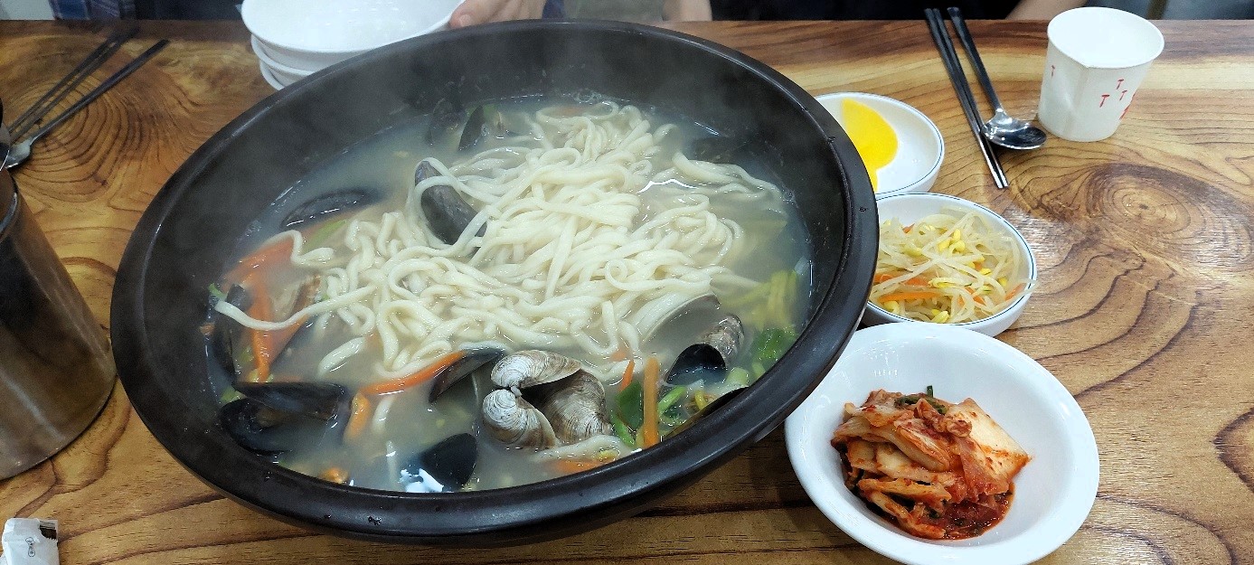 동죽이 들어가서 시원한 맛과 백합의 졸깃한 식감, 그리고 홍합의 깊은 맛까지 맛있는 칼국수 조합입니다.
