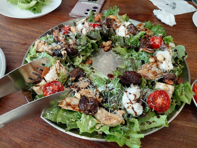 만약 샐러드만으로는 부족하다면 발사믹 스테이크 샐러드를 추천합니다. 상큼한 샐러드와 든든한 스테이크가 어우러져 한 끼 식사로 손색이 없습니다.
