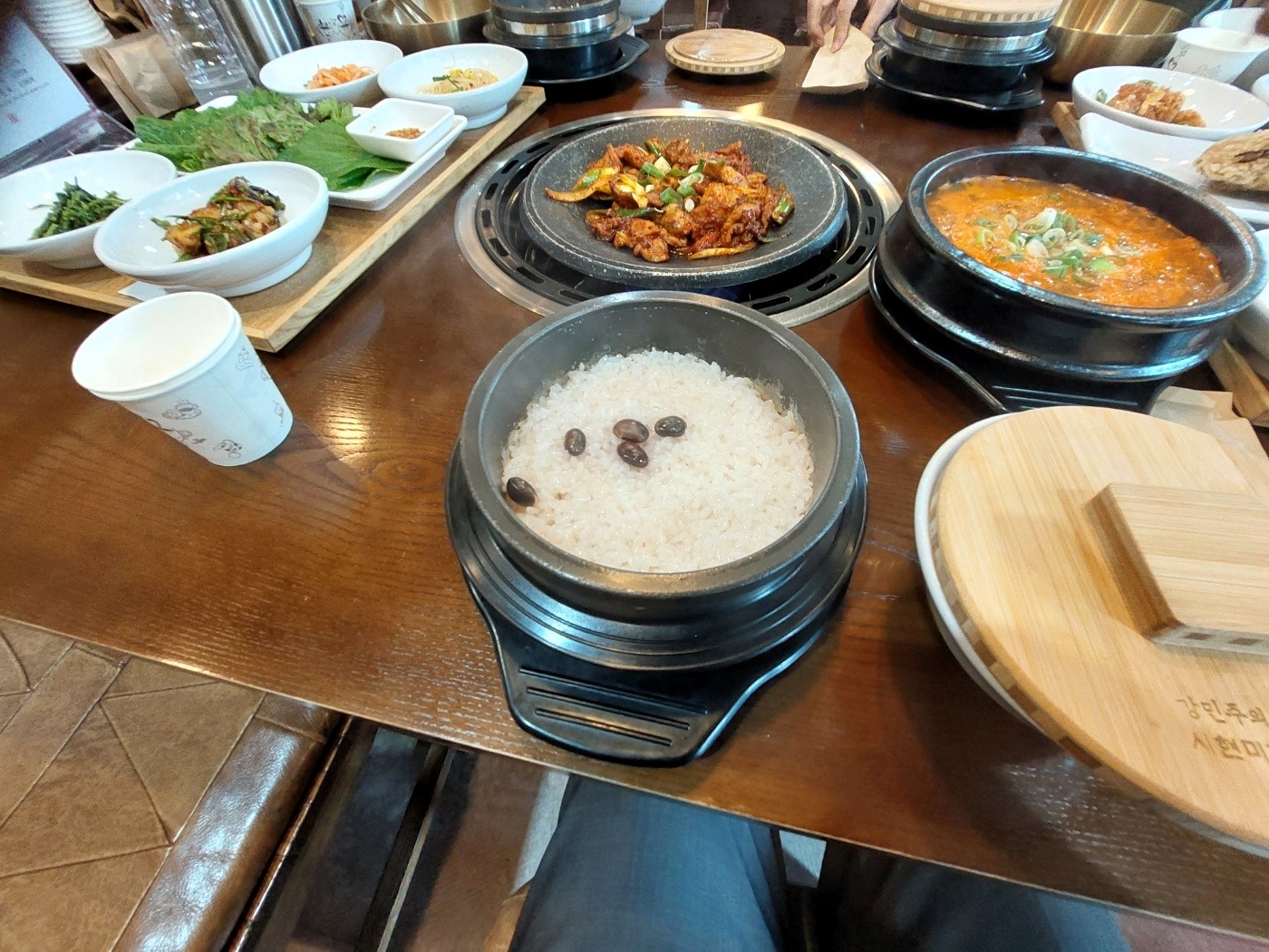 강민주 들밥은 현지 주민들 사이에서 건강식으로 소문난 식당입니다. 이름 그대로 곡물과 들깨, 제철 식재료를 아낌없이 사용해 ‘들밥’을 대표 메뉴로 내놓죠. 기본 반찬 하나에도 정성이 깃들어 있어, 단순히 허기를 채우는 식사가 아니라 몸을 돌보는 기분이 듭니다.