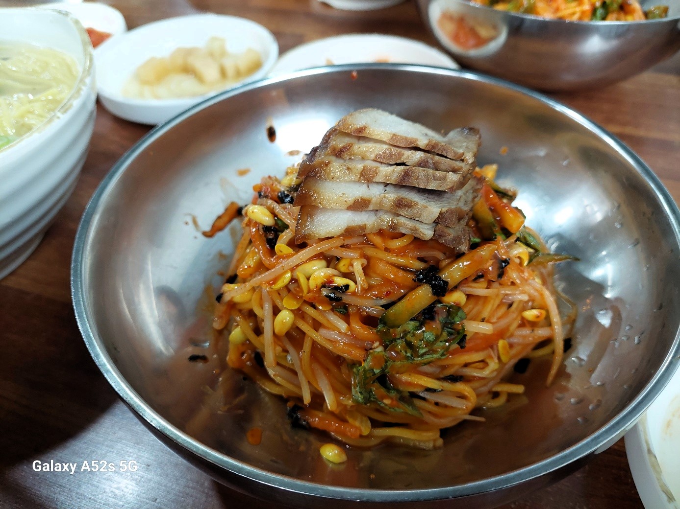 비빔국수에도 졸깃한 돼지고기 고명이 올라가서 다소 부족함을 채워준다. 고기랑 함께 먹으면 독특한 맛이 입안에서 펼쳐집니다.