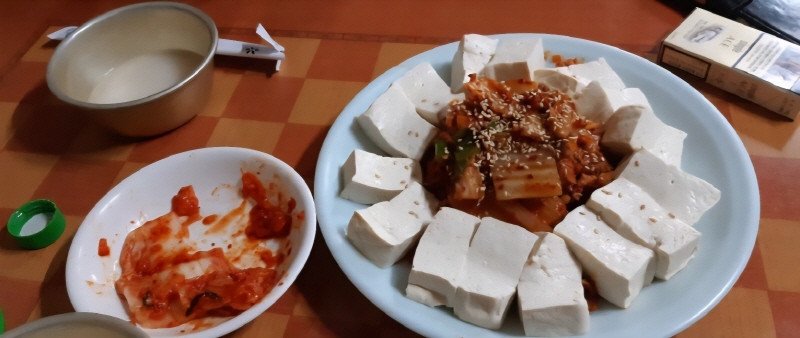 퇴근 후 허기진 배를 막걸리와 먹기 좋은 두부김치는 인기메뉴 중의 하나입니다. 고소한 두부와 시큼한 김치, 그리고 막걸리 한잔은 그날 하루의 피로를 풀어주는 자양강장제가 따로 없습니다.