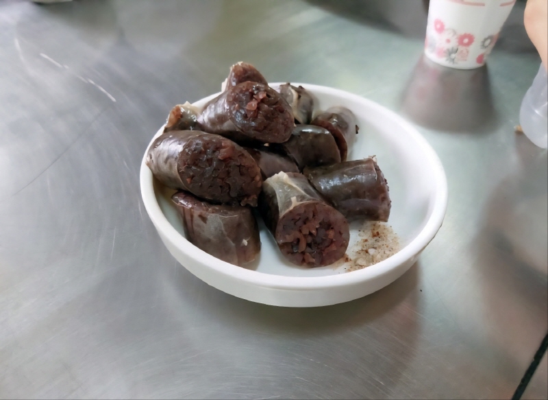 충주 무학시장 순대골목은 좌판식으로 되어 있어서 이모님 들고 대화를 하면서 순대국을 먹을 수 있습니다. 대화를 하다 보면 이모님들이 서비스로 순대를 주십니다. 먹어보면 냄새 없이 깔끔하고 식감이 탱글 해서 좋은데, 자세히 보면 냄새를 잡기 위해서 산쵸를 넣은 듯합니다.